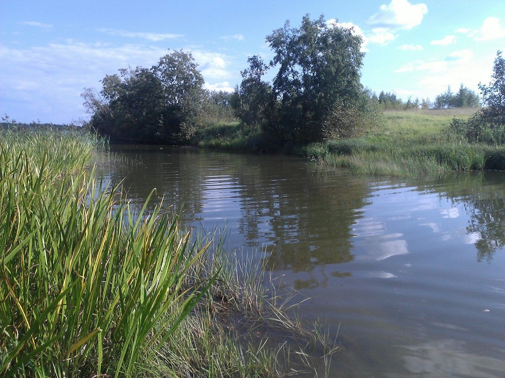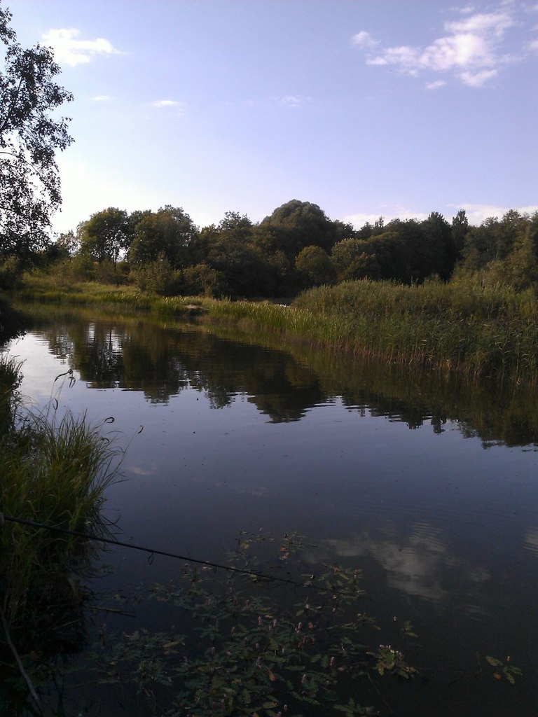 В минувшие выходные ездил на историческую родину и несмотря на отвратительную погоду вырвался таки на один прудик на предмет осеннего окуня (1 сентября как никак)... По приезду на место легко вычислил его местонахождение - это был мелководный залив в хвосте пруда глубиной не более 30-40 сантиметров.
