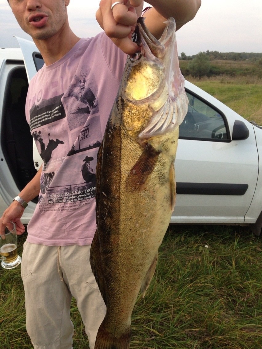 А в позапрошлые выходные ездили с товарищем с семями закрывать палаточный сезон на Зушу. К вечеру наш лагерь пополнился товарищем моего товарища, который приехал туда на пол дня раньше и успел подводно поохотиться... Результат на фото :o .... вес 3800 с копейками....стоял в траве... видно, что оседлый - цвет зеленовато-бурый(травяной)