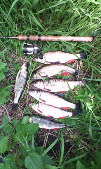 В результате, за пару часов ловли в жару поймано около полутора-двух десятков красноперых, половина из которых не дотянула и 300гр.