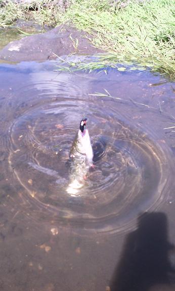 Потыкавшись с утра на набережной в пустую,решил прокатиться по старым местам и махнул на Орлик. Разведчиками запустил уокеры,но реакции живых организмов не увидел. Решил пройтись в травяные разливы и посмотреть ,что там. Первые же заброся принесли 2 окунят до 100 гр и шнурка около 300гр. Тоскливо как-то рыбалка проходит ,одна детвора резвится,а где же родители? Пробираясь по кустам нашёл одну ямку и первая проводка вытаскивает нга свет божий ХОРОШУЮ мамку. Да вот беда ,подслеповатая была,промахнулась по Перчику. Последующие забросы прошли впустую, а потому и решаю ставить тяжёлую артиллерию. Лежала в коробке ещё не разловленная Рудра красноголовая, её и зарядил.Делаю заброс и едва успев откинуть дужку на катушке ,как получаю уверенный ,по барски,удар.Наконец то !Что -то ,уверенное в своих силах и в безнаказанности, включило фрикцион на катухе и давай воду мутить. Рывки под каряги, в кусты, свечки дуплетом. Ничего не помогло зубастой красотке. На берегу Начался новый танец,как будто и не было борьбы в воде. Откуда же столько сил у владычицы речной? Особенно видя истерзанное сетями тело рыбы,покрытое порезами старыми и совсем свежими. Весы показали 3260гр. Фотик не брал с собой,потому с благодарностью ,за достойную борьбу ,поспешил отправить бедолагу обратно домой. Посчитав,что чувство глубокого удовлетворения получено,отправляюсь назад к машине..Переходя через мостик решил ещё пару забросов сделать на посошок! Снова поставил Салмовского Перчика и результат не заставил долго ждать.Щурёнок н 450 гр.был извлечён на мостки. Отпускаю и едва забросив ,получаю снова поклёвку. Вытаскиваю брата близнеца предыдущего шнурка. И тут вижу , из губы кровь сочится ,но не со стороны тройника ,а напротив. Вот балбес, снова попался первый. На этом решил поставить жирную точку,как впрочем и на отчёте