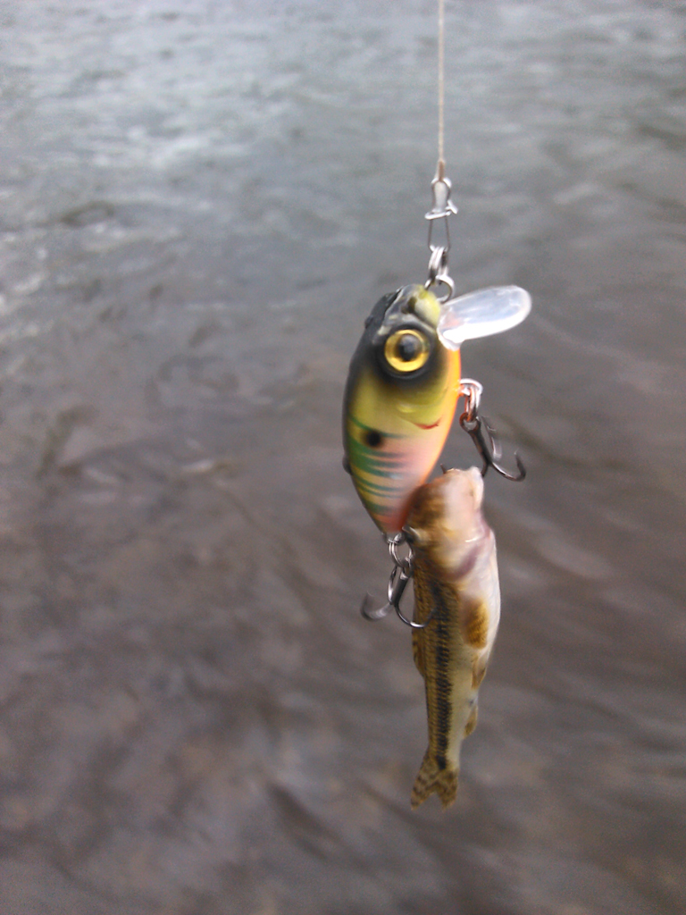Продолжаю ловить, через проводку опять поклевка и в этот раз лобастик покрупнее позарился на 35-й риджик.