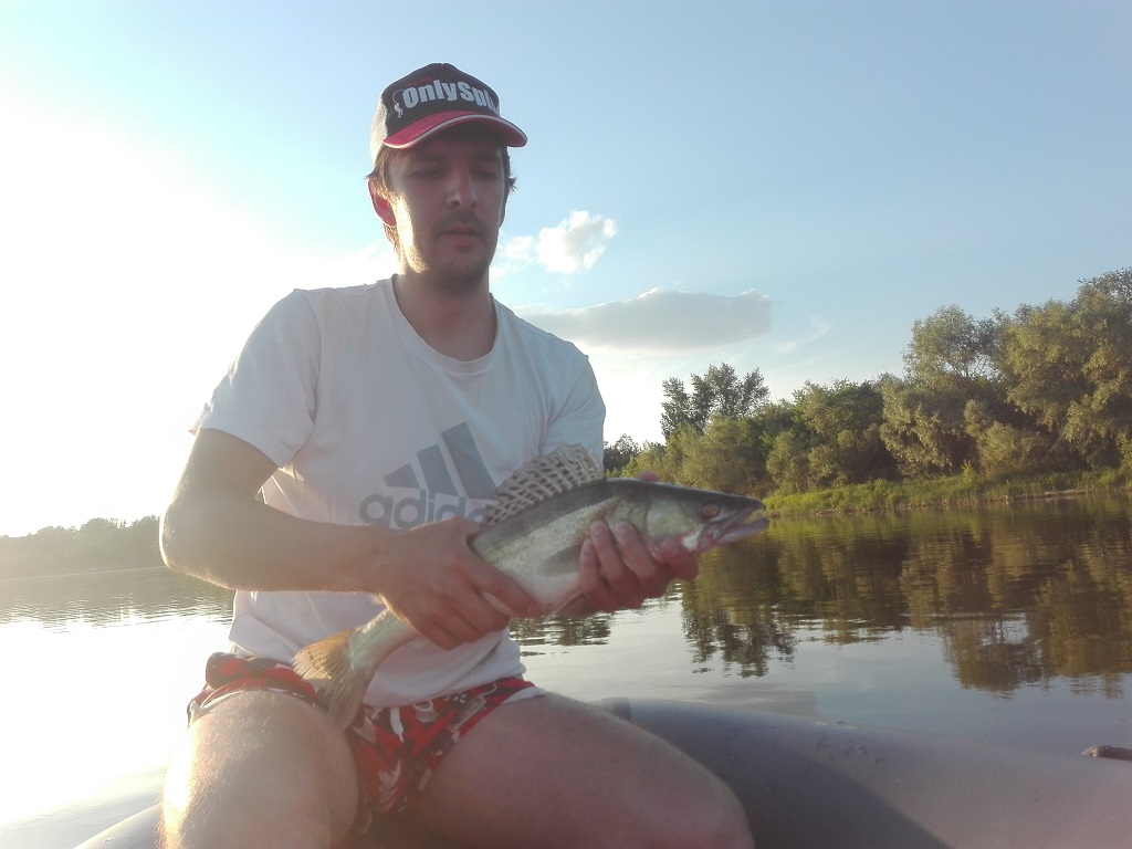 Так как с дороги мы были уставшие, то далеко ходить не стали и проверили ближайший коряжник, затопленный паром, что сказалось на результате: первый судачий недомерок взят! К слову сказать, больше таких малипупысек мне не попадалось.