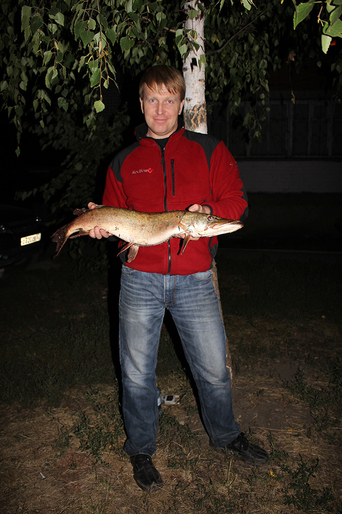 Проводке на третьей, на выходе из приличной для данного места ямы, следует четкий породистый удар и "паровозик" начинает давить в глубину совершенно по судаковому, без шараханий по сторонам... Фрикциончик Existа на пару с LESом , делают свое дело и через какое-то время из воды показывается совсем не тот кого ожидали - Щука!!! Раскисший от падения уровня воды берег, доставил проблемы с вываживанием, так что удалось взять эту мадам раза с третьего-четвертого..))) 3400