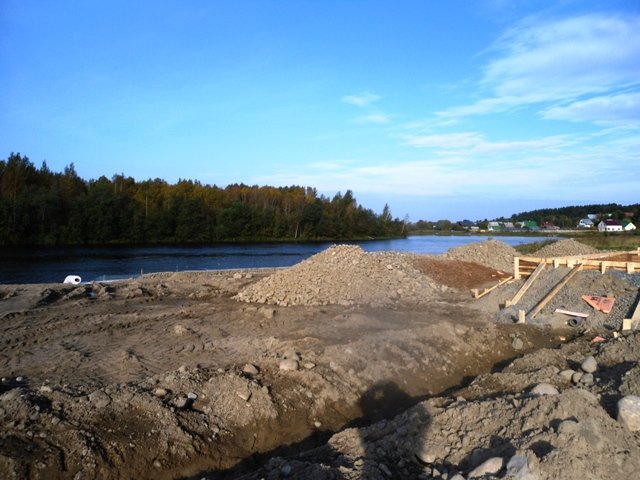 На фото: стройка на берегу Шуи, участники траления сетей, дамба на реке Нара